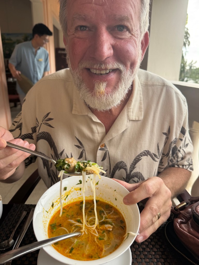 There are other variations, or at least noodle soups we ran into. Bun Cha with BBQ pork – Bourdain’s favorite. My Quang, a southern take and the favorite of our driver Hien. And Bun Bo Hue (a Viet Kimchee Soup)