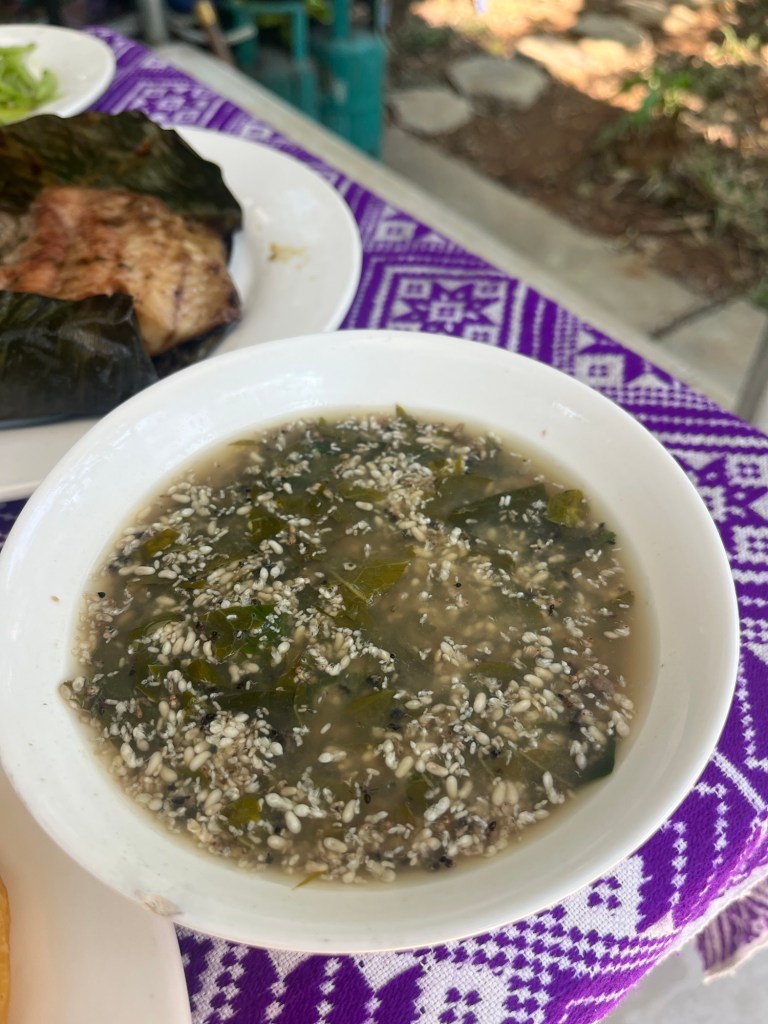 While in My Chou, we met a restaurant owner and her daughter who belonged to the white Thai tribe. They prepared an enormous meal that included ant egg soup. The soup, made at our guide’s request, was expensive and took a great deal of work to make. Evidently the father and daughter gathered the ants and the eggs deep in the mountains that morning. It took quite the effort but I ate a few bites, and it was not my favorite.