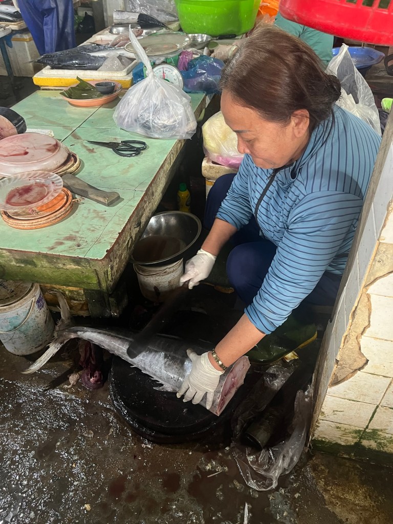 Women always manage the fish on shore and at market. Apparently it’s believed to be very bad luck to have women aboard a boat.