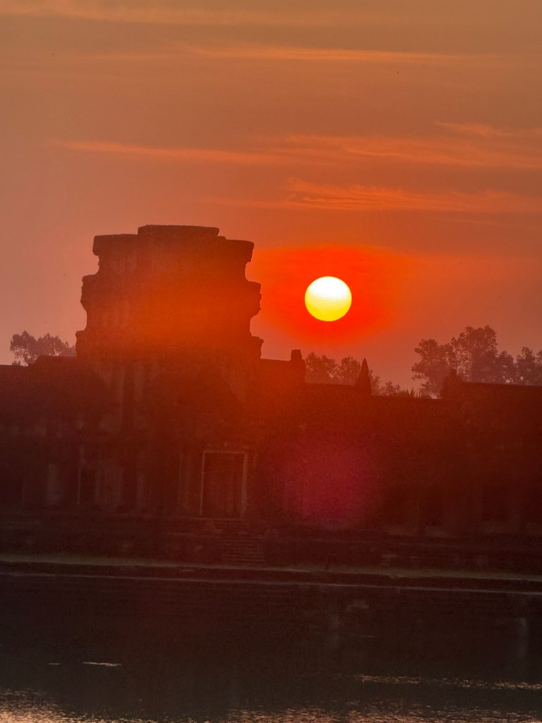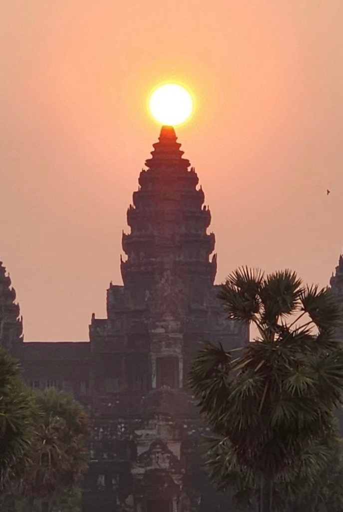 We sat at an exterior moat and watched the sun rise over the temple. At the spring equinox this occurs perfectly at the top peak of the central tower.