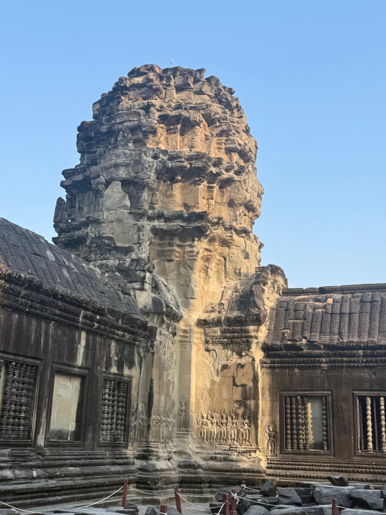 Bakon tower is the central tower. Much of it is closed for repair. A Korean NGO is funding a large project. An equally large restoration is indefinitely paused due to the elimination of USAID.