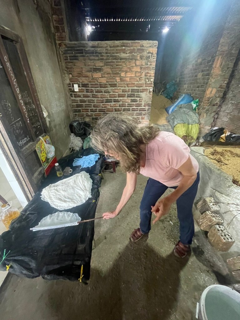 Next we had a few hands on experiences with a wood worker, and a maker of wheat paper/noodles. Really fun.