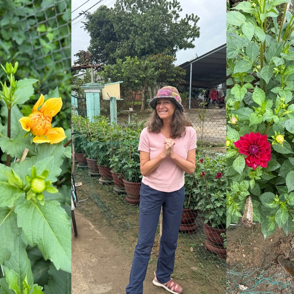 We stumbled onto a Dahlia farm (big tradition in the upcoming Lunar New Year), managed by Hoa, a retired language teacher. Juju geeked out sharing pictures of tubers, Grace’s wedding flowers and getting yet another lesson on VN vowel management.