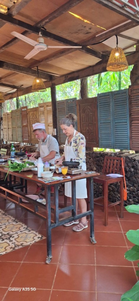 Half day market tour and Khmer cooking lessons. Just as good as the one in Hoi An – but just the two of us.