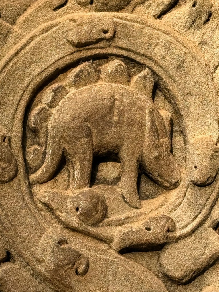 Animals and a Dinosaur (maybe) – Natural motifs, plants and native animals are featured in many carvings. One repeating figure raises a lot of questions among archaeologists. Were there dinosaurs surviving into the 13th century?
