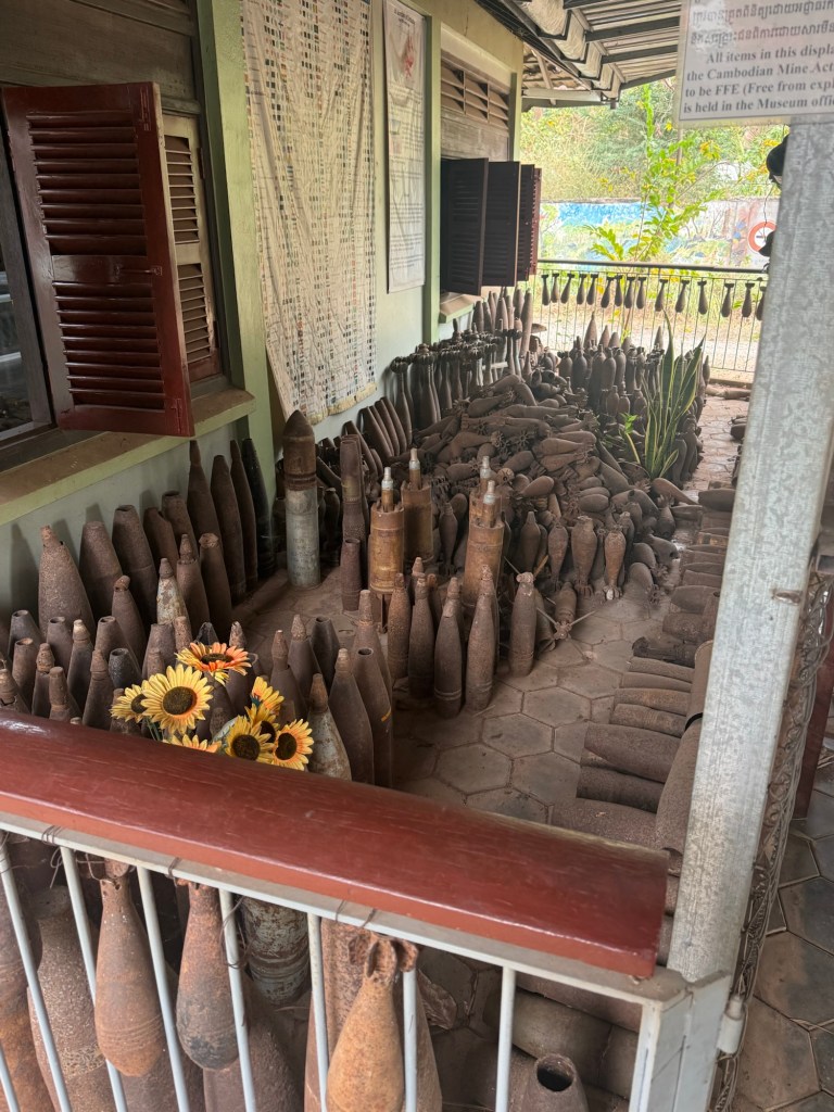 Cambodian Land Mine Museum: The visit here was harrowing. There were case after case of recovered Russian, Chinese and US mines, and also rooms full of unexploded ordinance.
