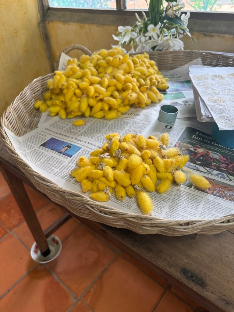Gold Silk Farm: A Wednesday visit to a working silk farm and an education in Cambodian real-politick from the owner Pheach. The farm and factory were built to employee refugees, victims and orphans of the Khmer. Pheach’s commentary cut through the propaganda and changed our view on quite a few things.