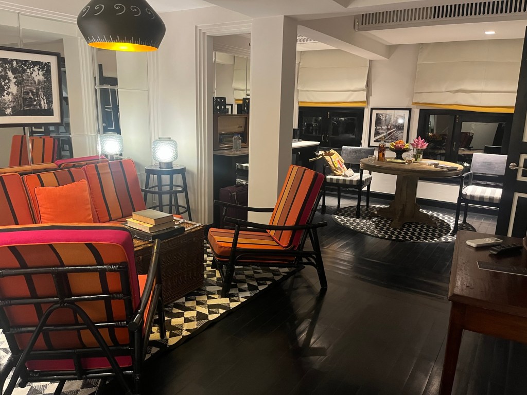 Our new guide, Rom and our new driver Ravuth expedited us through customs and took us to by far the most beautiful hotel and suite we’ve stayed in – ever, the Shinta Mani, Angkor.